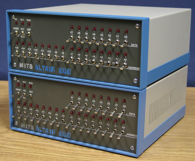 The power supplies are internally fused, and have output over voltage protection and output over current protection (overload) circuits. They also automatically recover from these faults when the fault is removed. These are dangerous because there are exposed AC voltages present. The computer should not be used unless the case cover is installed. ![]() Vintage-Bottom, Replica-Top (switch nuts not installed on vintage unit) Vintage-Bottom, Replica-Top (not all case screws installed) - The looks a little faded on the 30 year old computer! : ) The genuine Optima enclosure used in the replica is identical to the vintage Optima enclosure used by MITS. The paint/color codes used on the cases is identical to the cases sold in 1975. The front panels are powder coated and then silk screened with white ink. The only difference is the back panel, and lid. There are NO vent holes in the replica lid unlike the original. I was expecting to have vent holes, but Optima said they were not "standard". When they told me that the case was still a standard item in their catalog, I assumed that the vent holes were included. Not having vent holes does not cause overheating in the replica because of the efficient switching power supplies. The lack of vent holes also reinforces the difference between a replica and an authentic vintage unit. So what are we left with? Hopefully you will agree with me that it is be best combination of modern compromise and historic authenticity! Please contact me with ANY questions or comments you have after reading this. Thanks! Visit Stockly Electronics